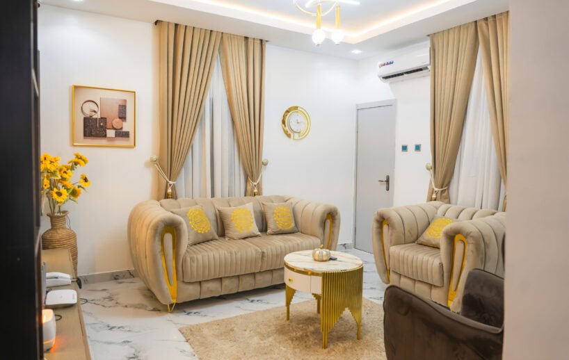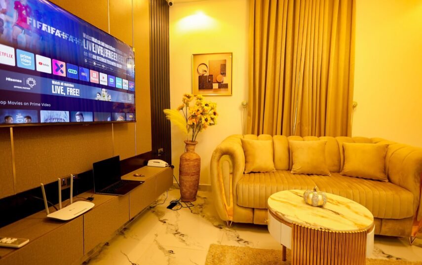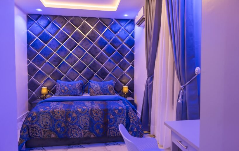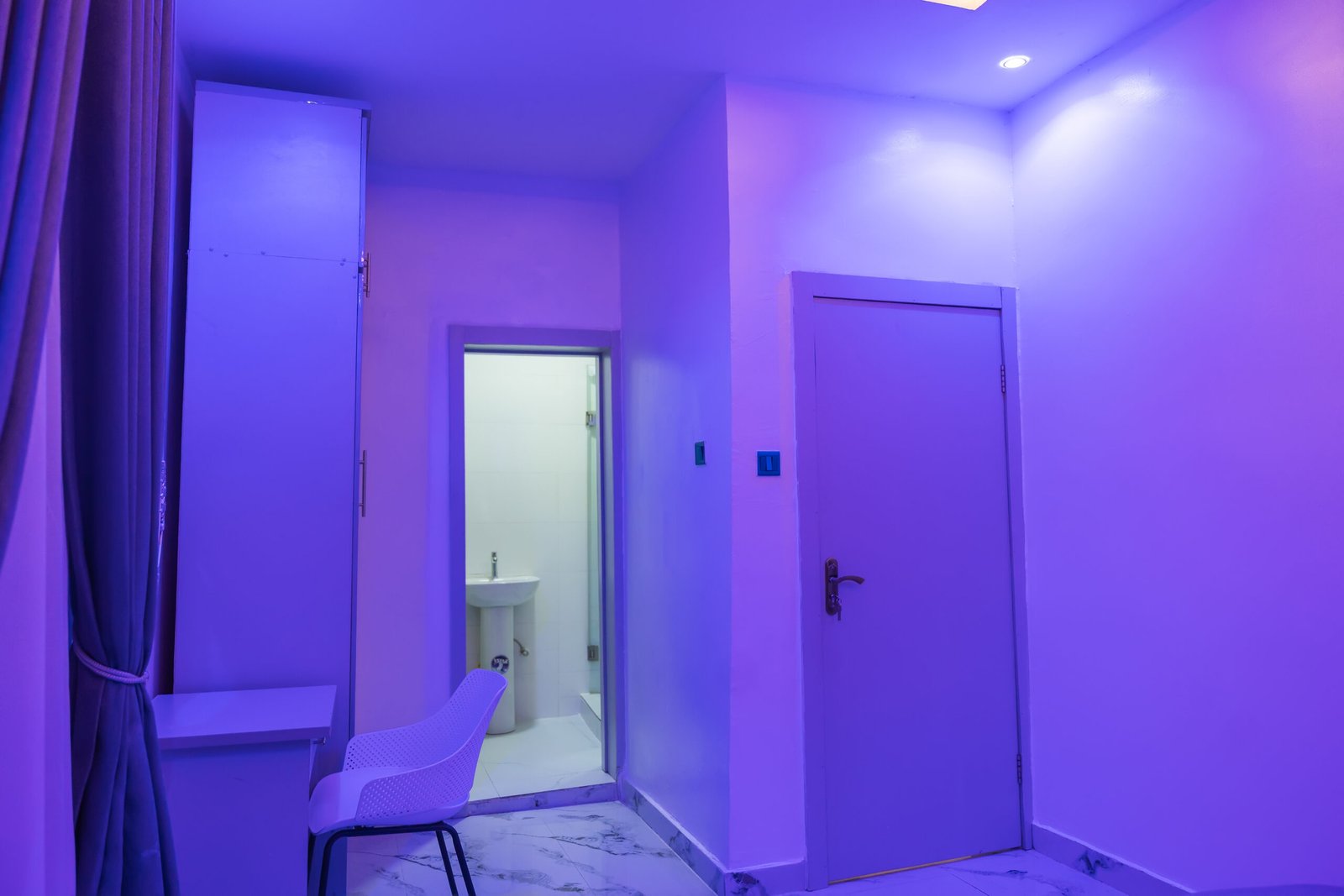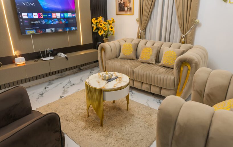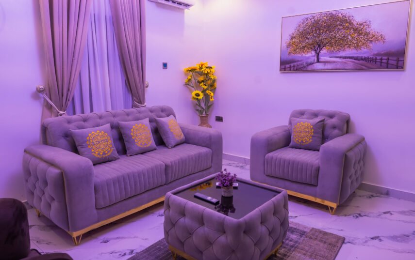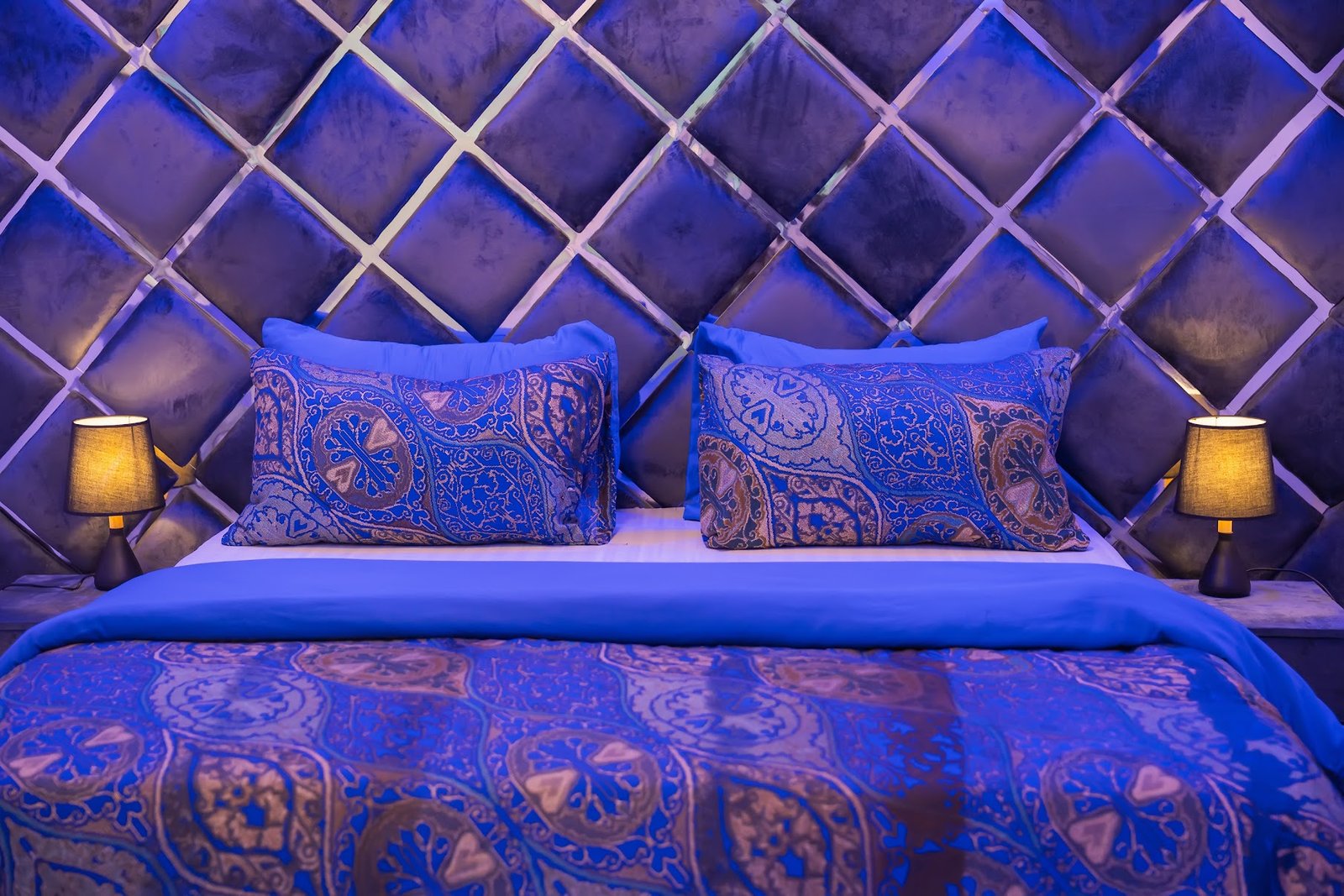 Stylishly designed with elegant décor, this spacious apartment offers a serene bedroom with an en-suite bathroom, a modern living room with three single-seater sofas, and a private balcony. Enjoy a fully equipped kitchen with a sink, microwave, refrigerator, blender, pots, and utensils.