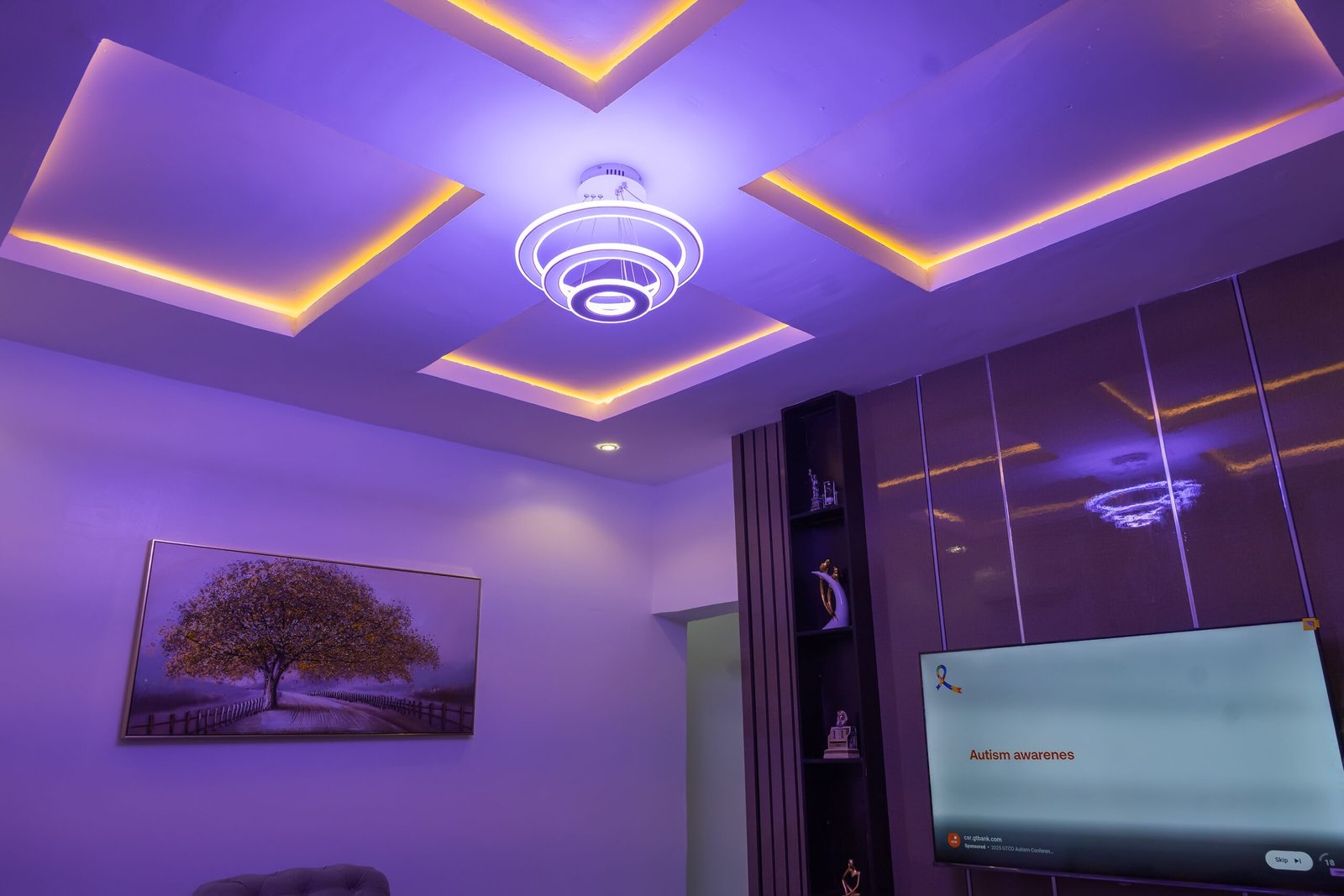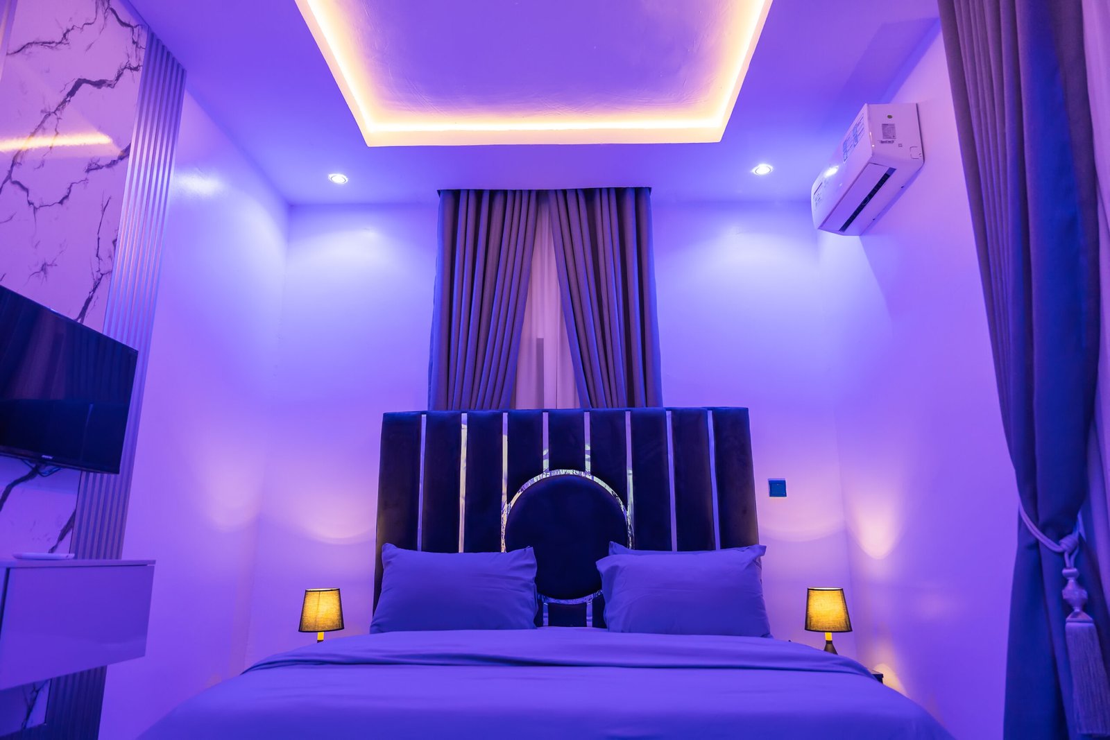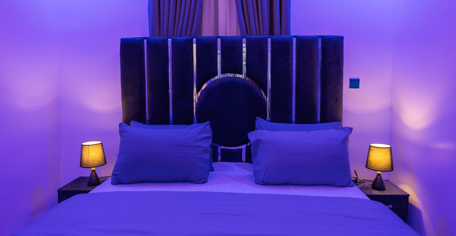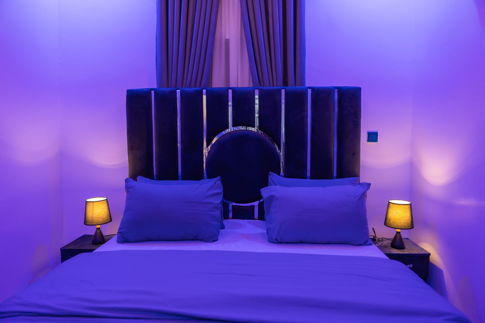 Our spacious and stylish one-bedroom apartment features a private bedroom with an en-suite bathroom, a cozy living room with three comfortable single-seater sofas, and a fully equipped kitchen for cooking. Enjoy modern amenities such as a 65-inch TV, free Wi-Fi, air conditioning, and 24/7 electricity. A separate visitor’s toilet in the living room offers added convenience for guests.